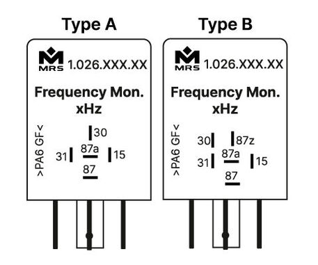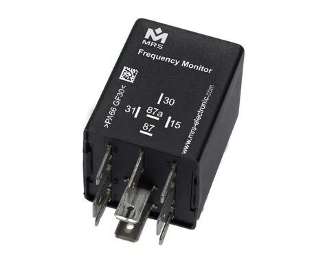 The frequency monitor measures the input signal frequency applied to terminal 15 and energizes/deenergizes the output when the signal frequency exceeds/drops below the defined threshold frequency. The threshold frequency can be selected from the 10 - 1.000 Hz frequency range. In addition, combinations including custom delay times are possible. Please refer to the chapter housing and base plates for additional housing options.