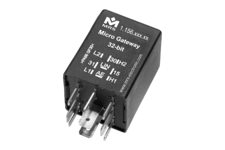 The new Micro Gateway is a compact gateway for automotive applications. The core piece, the 32-bit processor, provides you with higher performance and thus secure routing and gateway functionality at high bus loads. Thanks to the reduced housing size, you can now also use the gateway in standard relay boxes with a height of 40 mm. The 2 I/Os are now also PWM capable. Implement larger and more complex programs and applications by increasing the flash memory to 2 MB. The RAM has also been increased from 12 KB to 256 KB. This gives you even more memory to temporarily store the higher amount of data