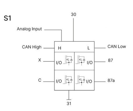 The Micro PLC CAN 4 I/O is a very small controller for automotive applications. The module is user configurable/programmable for a wide range of automotive applications. Control and data readout is via CAN-Bus. The small controller has four I/Os that can be programmed as input or output. The CAN-Bus module also has an analog input and can be easily implemented in an existing can bus network.