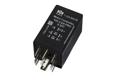 The Motor Controller 10 A CAN PRO is a microcontroller-based module for controlling direct current (DC) motors. It is suitable for automotive applications, among others, and saves valuable space in your application thanks to its compact design. In contrast to the standard version ‘Motor Controller 10 A CAN’, the PRO version offers you software-configurable analog inputs and is therefore even more versatile.