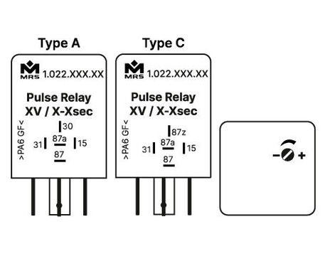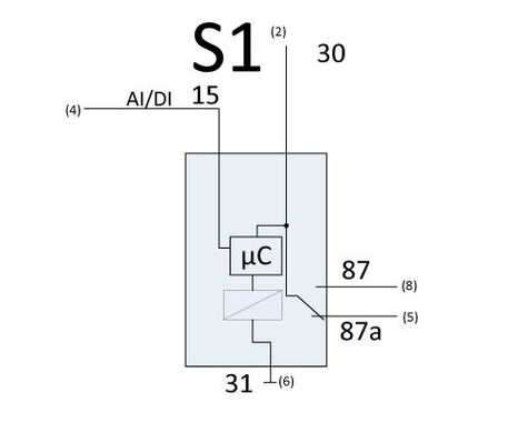 Circuit diagram S1: Operating voltage is applied to terminal 30. If the voltage is fixed briefly or permanently at Terminal 15, the relay will immediately pull on the set time and then fall off again. Circuit diagram S3: Operating voltage is applied to terminal 87z. If the voltage is short or permanent at Terminal 15, the relay will immediately pull in for the set time and then fall off again. Control and contacts are separated from each other and can thus be placed in a chain of links. All schematics: The duration of the control signal does not affect the duration of the output pulse (i.e. the relay is not retriggerable). The exact pulse length can be set with the potentiometer within the given time interval. Housing forms can be found in the section housing and basic body.
