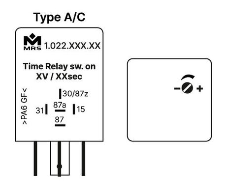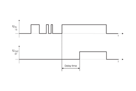 All schematics: Operating voltage is applied to terminal 30/87z. If the voltage is applied to terminal 15, the relay will move on after the set time has elapsed. If the voltage is removed at Terminal 15, the relay drops off immediately. Circuit diagram S3: The contacts are separate from the control and can therefore be used in links. Housing forms can be found in the section housing and basic body.