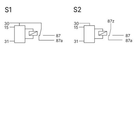 Time relays with switch on and off delay can be used if loads are to be switched on and off time-delayed. Please indicate the desired tightening and waste delay time when ordering. All schematics: Operating voltage is applied to terminal 30/87z. If the voltage is set at Terminal 15, the relay will pull on at the end of the specified time. If the voltage is removed at Terminal 15, the relay falls off after the specified time has elapsed.