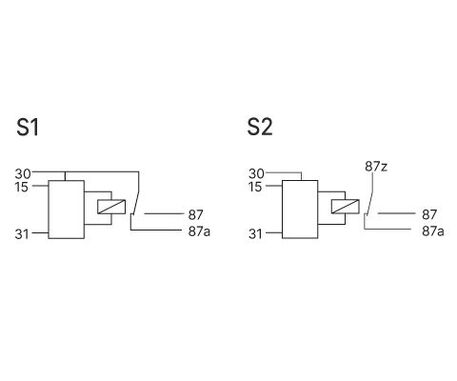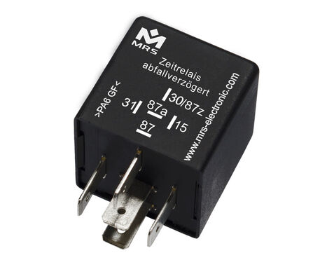 Time relays with switch off delay switch on the load after the specified delay time has elapsed. Please specify the desired delay time when ordering. All schematics: Operating voltage is applied to terminal 30/87z. If the voltage is applied to terminal 15, the relay will immediately pull on. If the voltage is removed at Terminal 15, the relay will fall off after the specified time has elapsed.