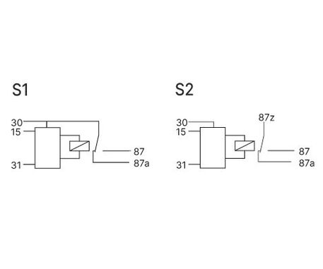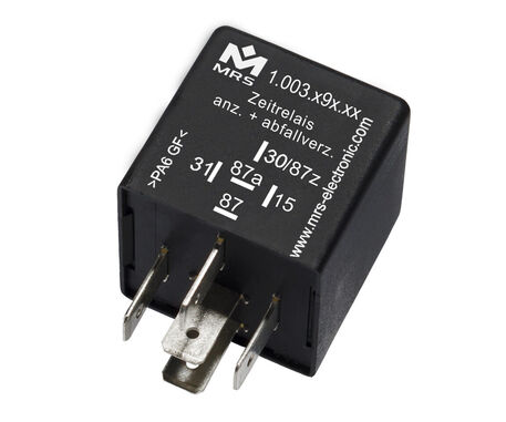 Time relays with switch on and off delay can be used if loads are to be switched on and off time-delayed. Please indicate the desired tightening and waste delay time when ordering. All schematics: Operating voltage is applied to terminal 30/87z. If the voltage is set at Terminal 15, the relay will pull on at the end of the specified time. If the voltage is removed at Terminal 15, the relay falls off after the specified time has elapsed.