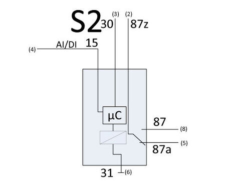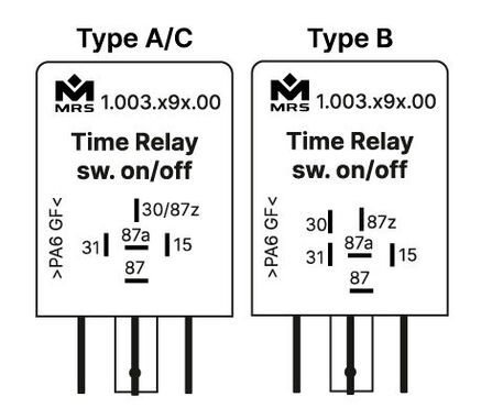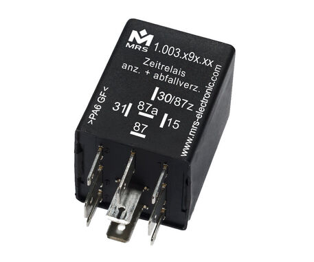 Time relays with switch on and off delay can be used if loads are to be switched on and off time-delayed. Please indicate the desired tightening and waste delay time when ordering. All schematics: Operating voltage is applied to terminal 30/87z. If the voltage is set at Terminal 15, the relay will pull on at the end of the specified time. If the voltage is removed at Terminal 15, the relay falls off after the specified time has elapsed.