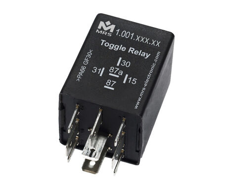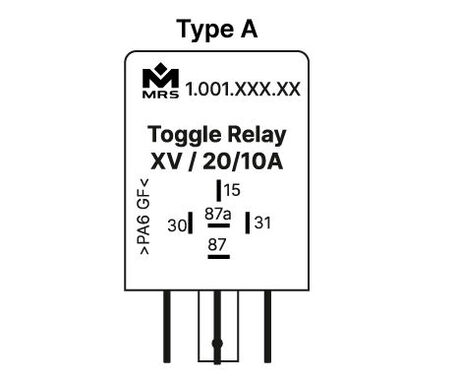 The field of application of stepping relays is the switching on and off of consumers via push button operation. With the stepping relay, a load can be switched via a button. If an impulse is detected at terminal 15, the relay switches and holds itself. Another impulse switches again. (Latch switch or toggle flip-flop). Terminal 15 is debounced. Housing shapes can be found in the Housing and basic body chapter. These stepping relays are not programmable.
