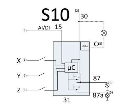 Thresholds: 11.5V / 12.5 V; Undervoltage Monitor with 87a, Connection S10